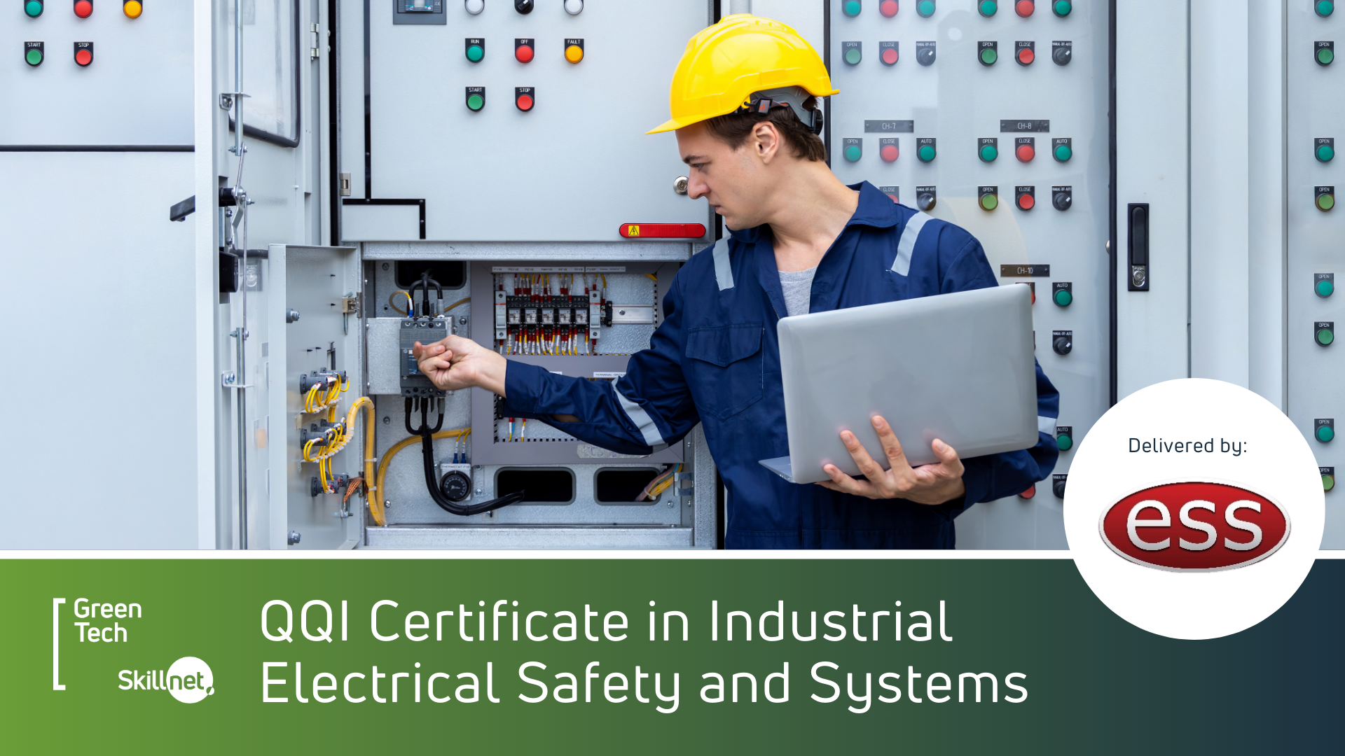 The QQI-accredited Industrial Electrical Safety and Systems is a part-time course, delivered over 5 days in class (1 day per week) with online blended supports and an exam in week 6.